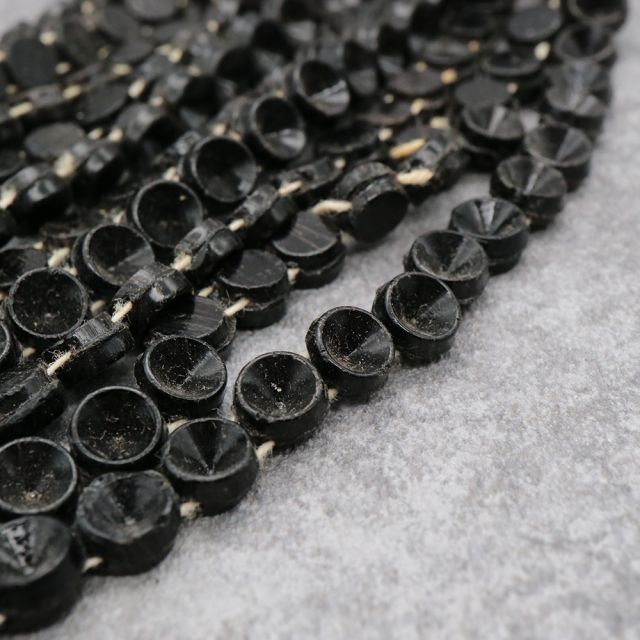 当時のビーズは手作業でのカットやモールド成形が多く、現代では再現が難しい独特の風合いを持っています。