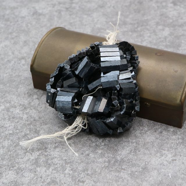 19世紀末から20世紀初頭にかけてフランスやボヘミア(現チェコ)はガラスビーズの一大生産地として知られ、特に黒い「ジェット風ガラス」や「オニキス調ガラス」は喪の装飾品やモードのアクセサリーに多用されました。
