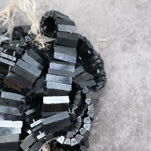 糸通しフランスヴィンテージビーズ ブラック スクエア 約9.5x2.5mm【1連約24個】