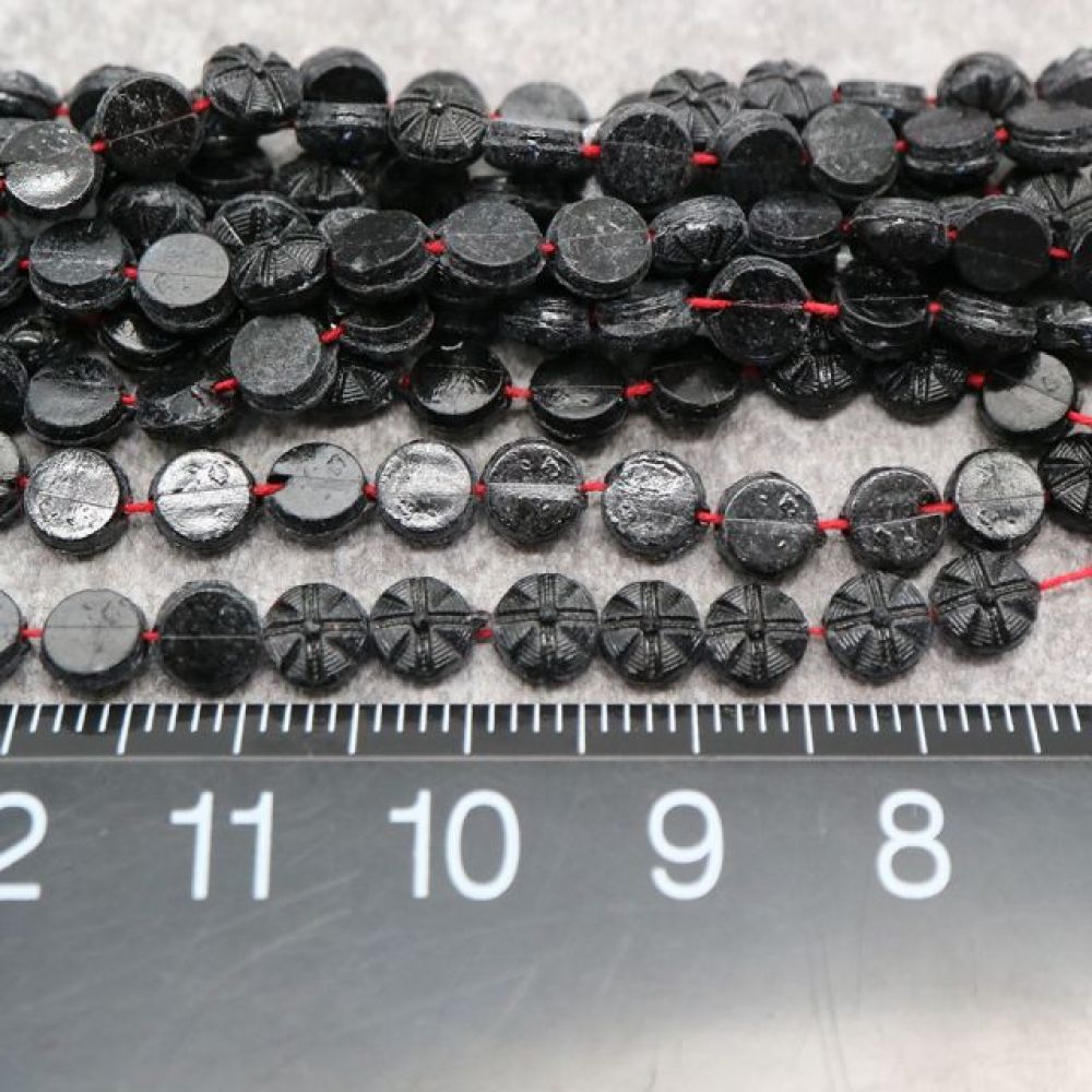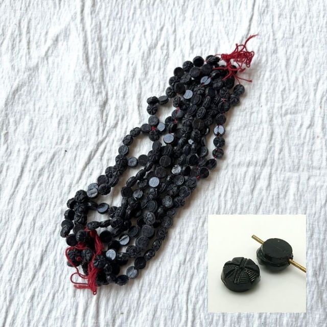 • フランスヴィンテージビーズ ブラック フラットラウンド