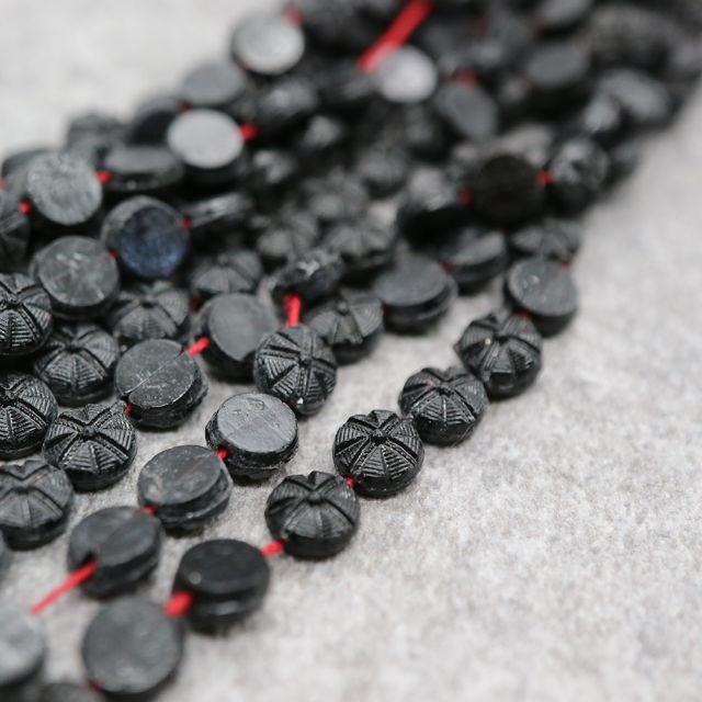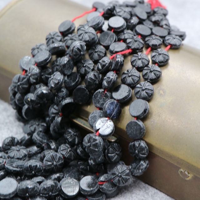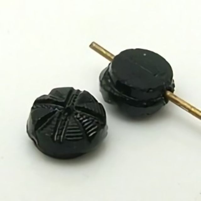 糸通しフランスヴィンテージビーズ ブラック フラットラウンド 約5x5mm【1連約23個】