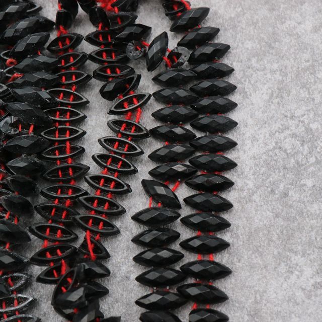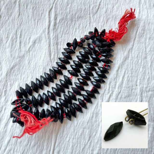 糸通しフランスヴィンテージビーズ ブラック マーキス 約10x4mm【1連約22個】