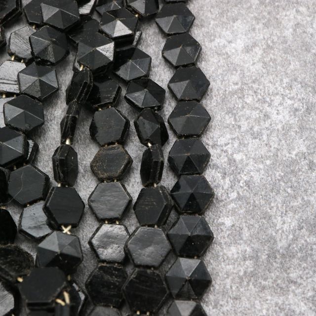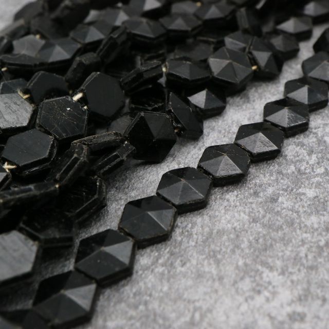 糸通しフランスヴィンテージビーズ ブラック 六角形 約9mm【1連約25個】