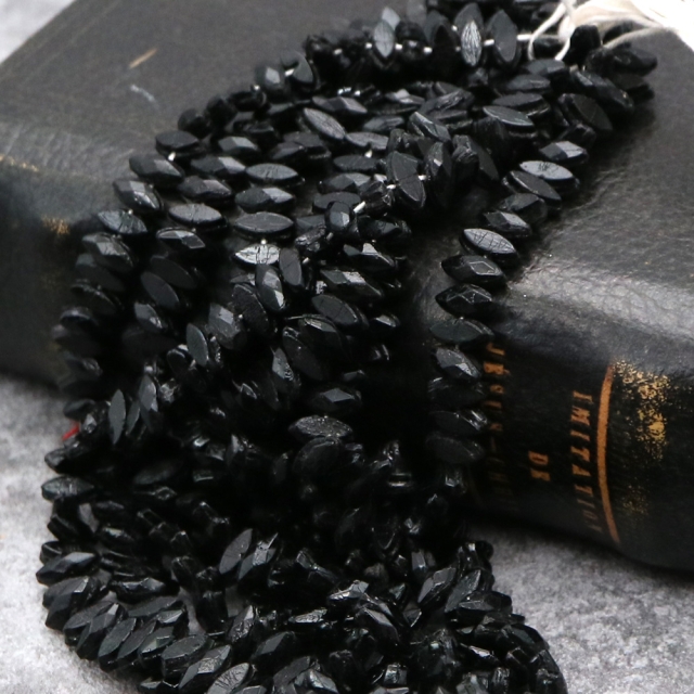 19世紀末から20世紀初頭にかけてフランスやボヘミア(現チェコ)はガラスビーズの一大生産地として知られ、特に黒い「ジェット風ガラス」や「オニキス調ガラス」は喪の装飾品やモードのアクセサリーに多用されました。