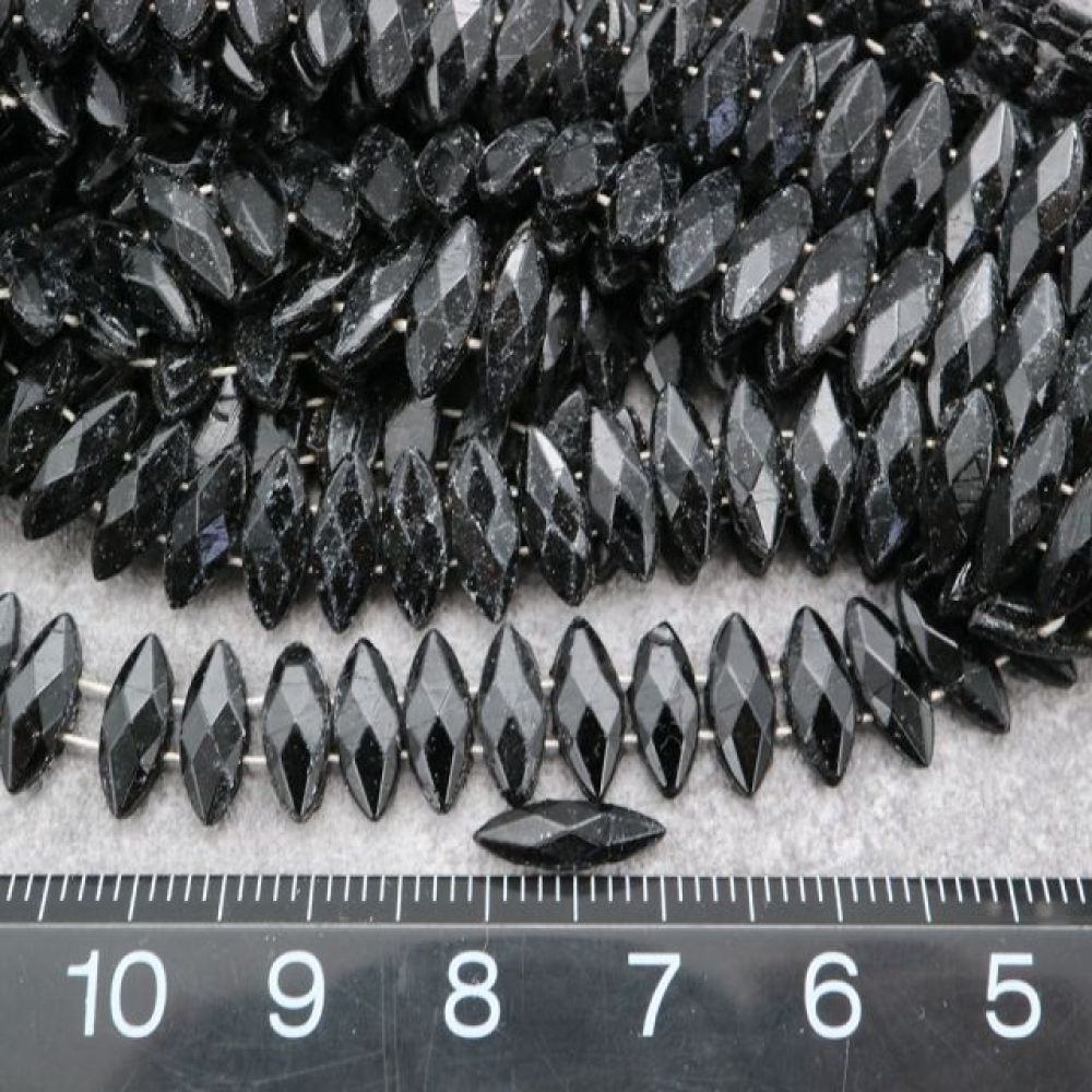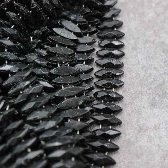 フランスヴィンテージビーズ マーキス ブラック 約10x4mm【5個】