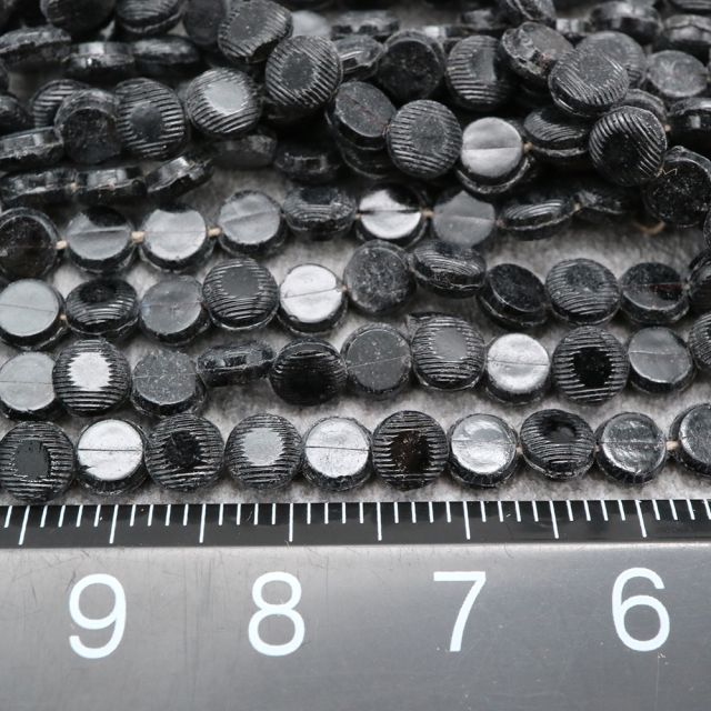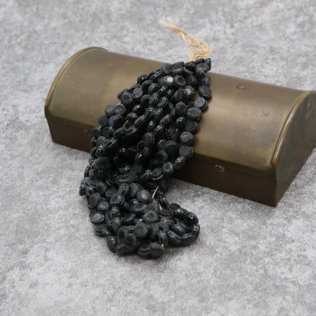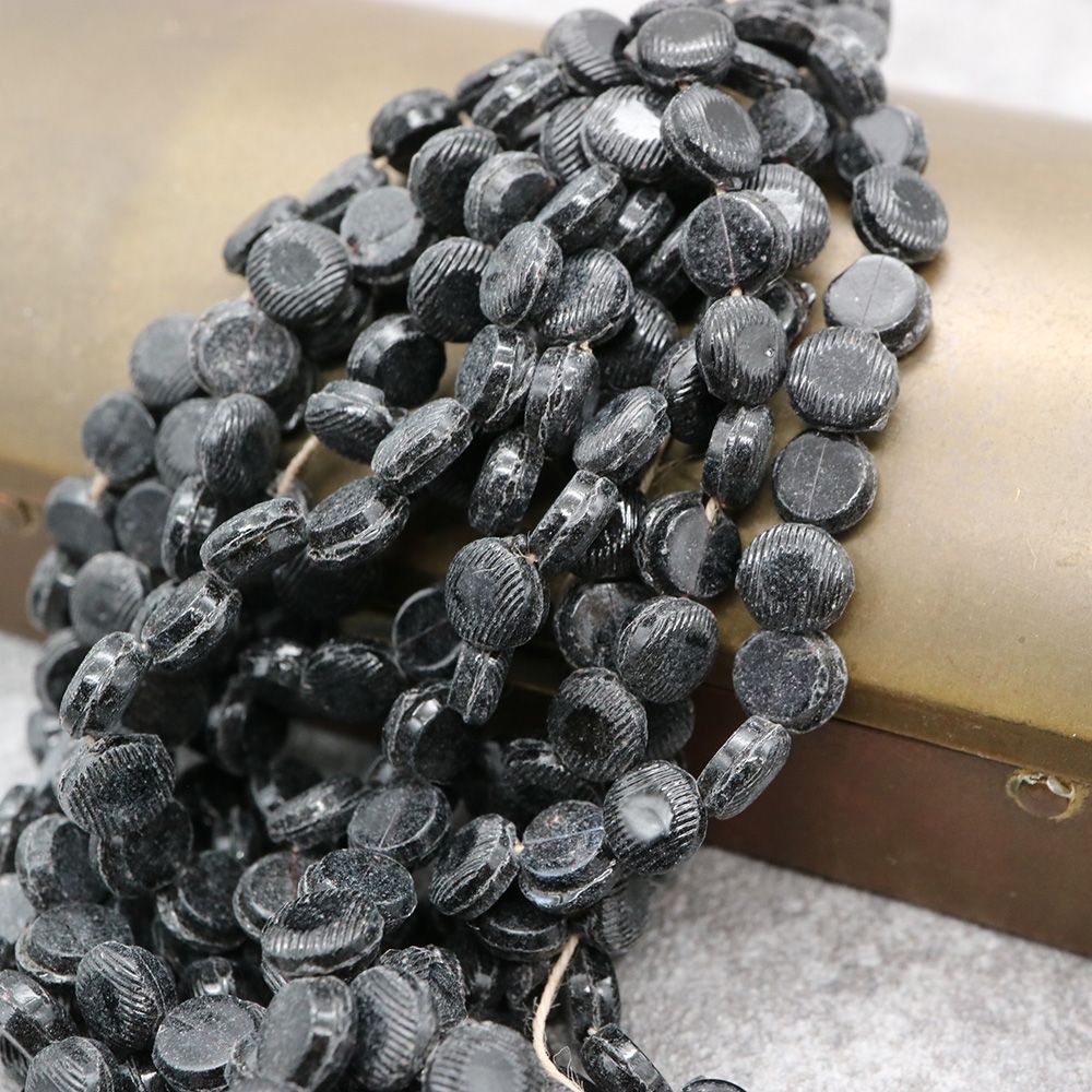 糸通しフランスヴィンテージビーズ ブラック ドーム型【1連約26個】