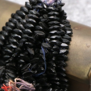 19世紀末から20世紀初頭にかけてフランスやボヘミア(現チェコ)はガラスビーズの一大生産地として知られ、特に黒い「ジェット風ガラス」や「オニキス調ガラス」は喪の装飾品やモードのアクセサリーに多用されました。