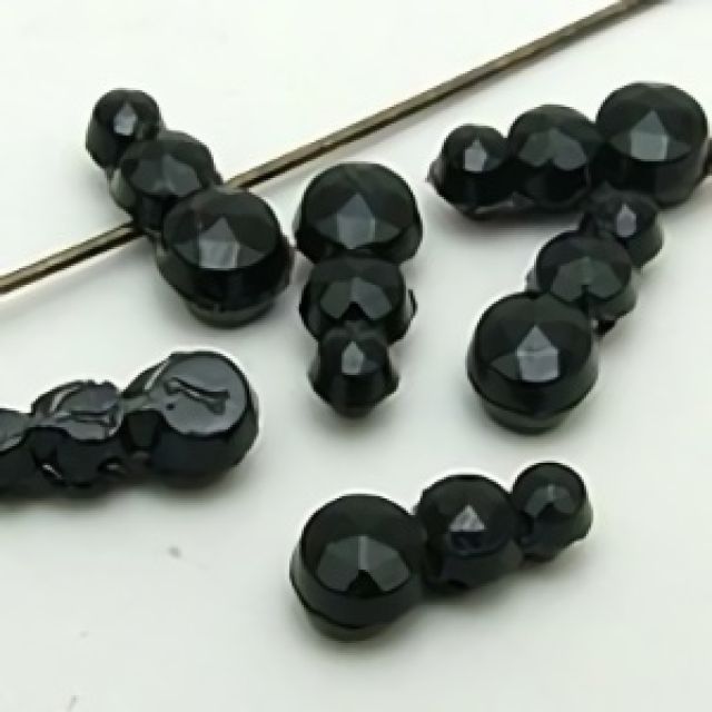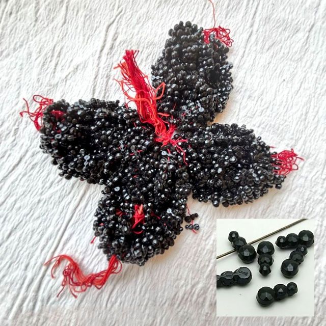 19世紀末から20世紀初頭にかけてフランスやボヘミア(現チェコ)はガラスビーズの一大生産地として知られ、特に黒い「ジェット風ガラス」や「オニキス調ガラス」は喪の装飾品やモードのアクセサリーに多用されました。