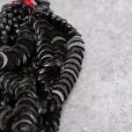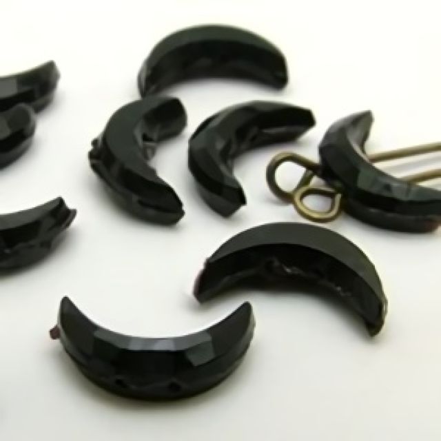 19世紀末から20世紀初頭にかけてフランスやボヘミア(現チェコ)はガラスビーズの一大生産地として知られ、特に黒い「ジェット風ガラス」や「オニキス調ガラス」は喪の装飾品やモードのアクセサリーに多用されました。