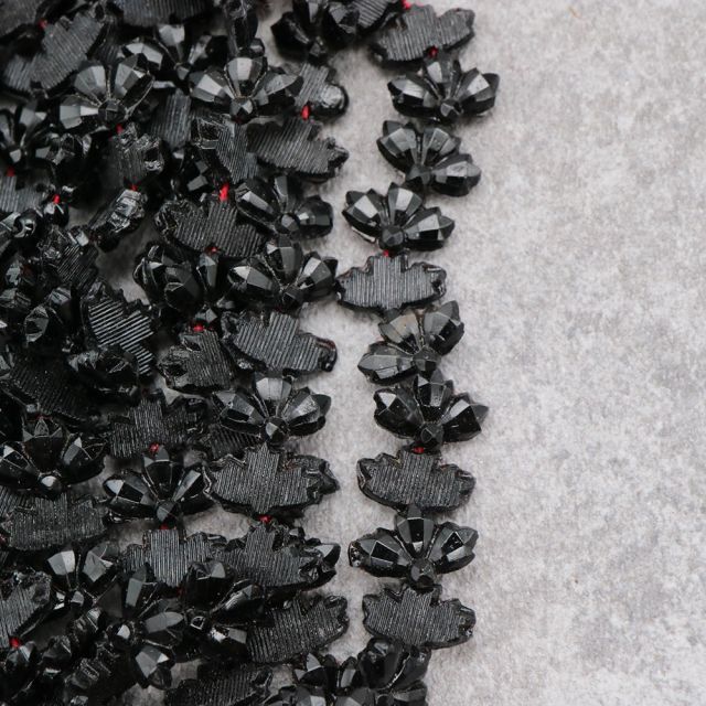 糸通しフランスヴィンテージビーズ ブラック リーフ 約10x6mm【1連約23個】