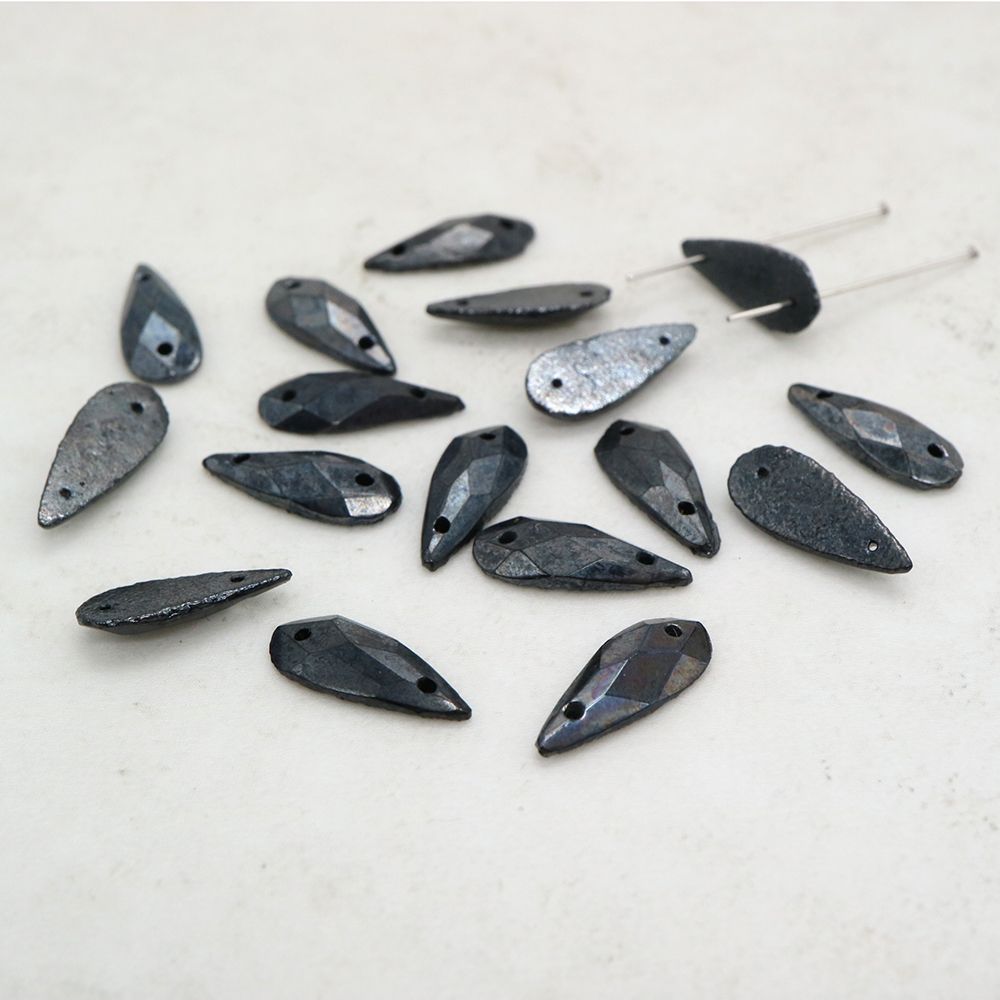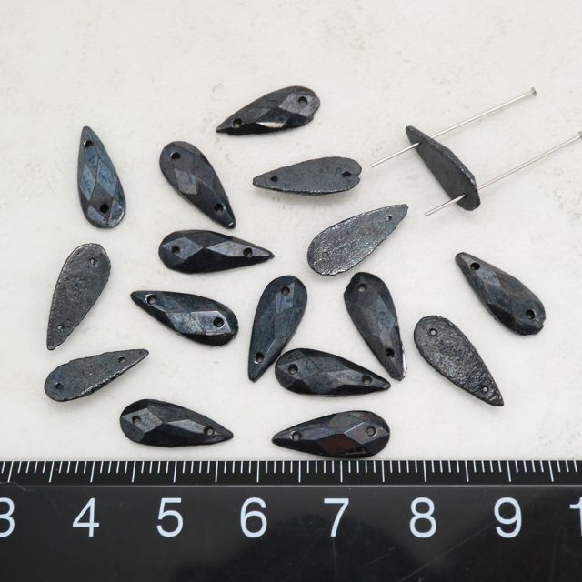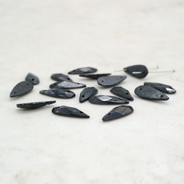 フランスヴィンテージビーズ: しずく メタリックヘマタイト 約14x6mm【6個】