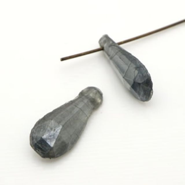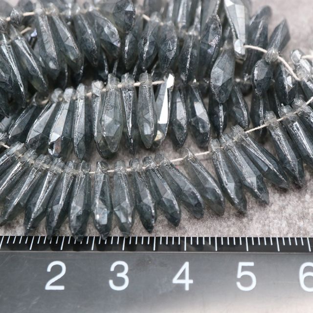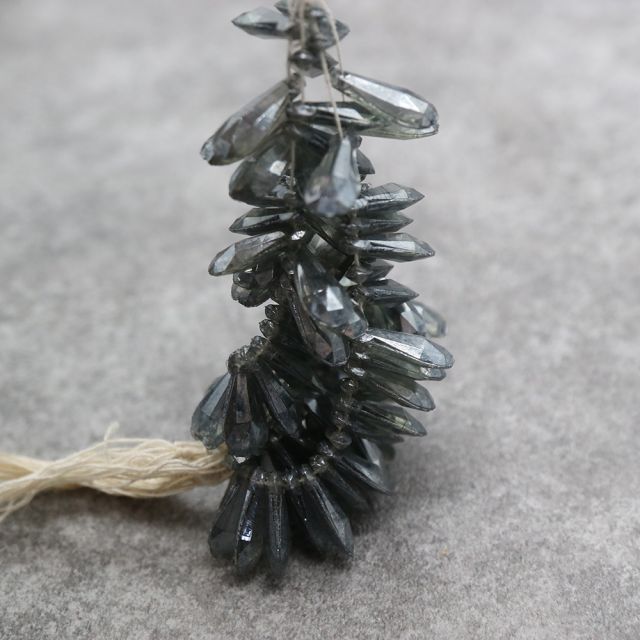 糸通しフランスヴィンテージビーズ :変形ドロップ メタリックグレイ 約14x6mm【1連約24個】