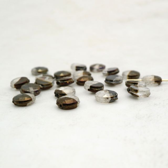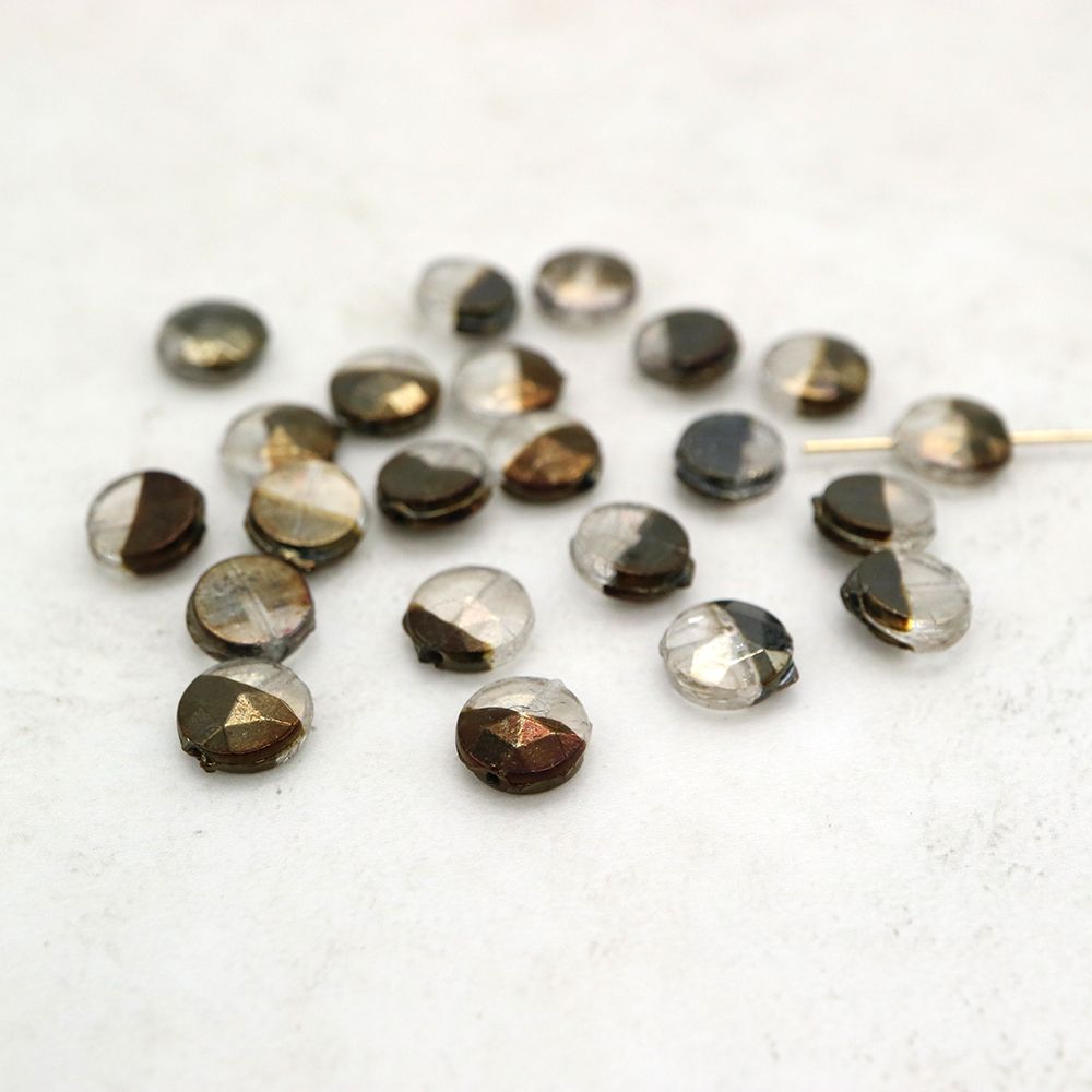 フランスヴィンテージビーズ: フラットラウンド メタリックグリーン/クリスタル 約7.5mm【5個】