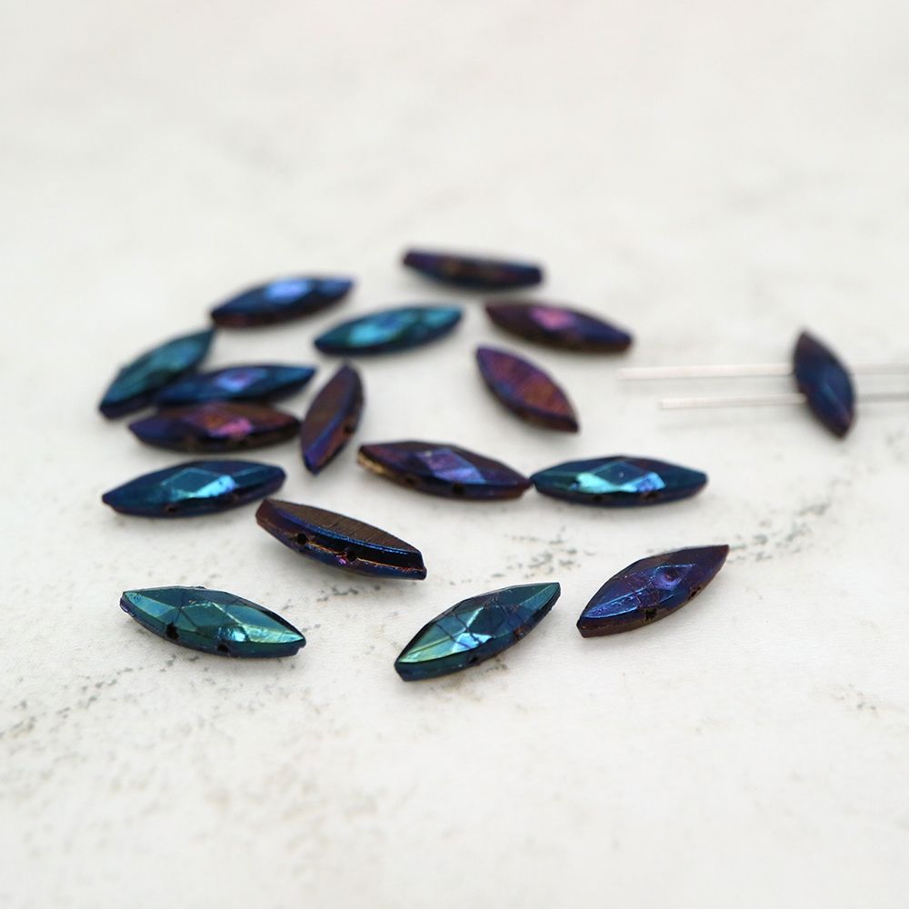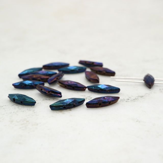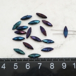フランスヴィンテージビーズ : マーキス メタリックブルーアイリス 約11x4mm【6個】