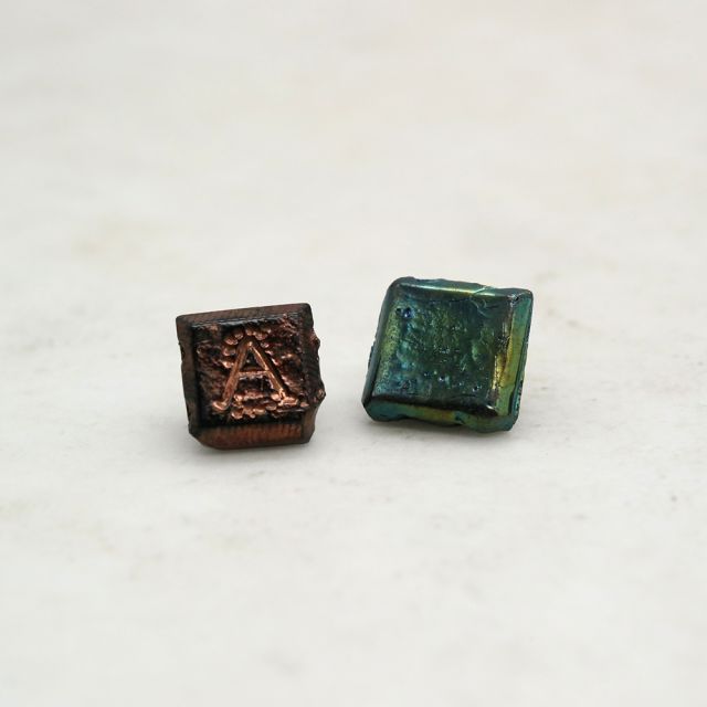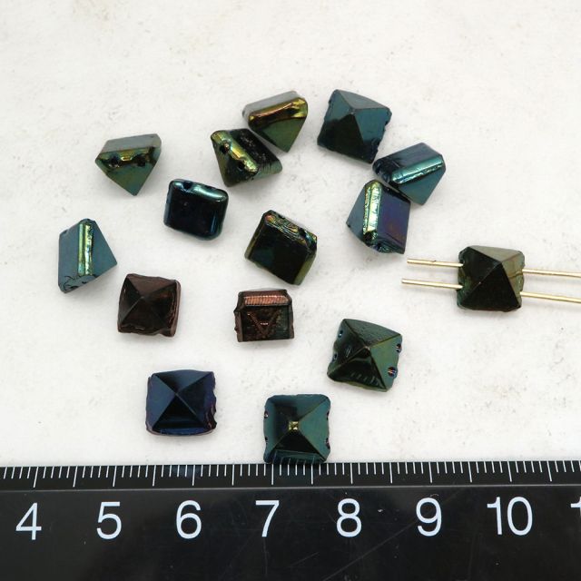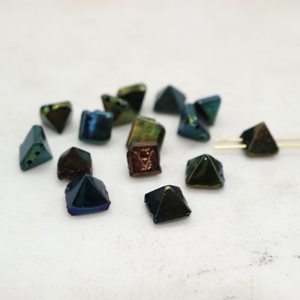 フランスヴィンテージビーズ :ピラミッド メタリックグリーンアイリス 約8x8mm【2個】