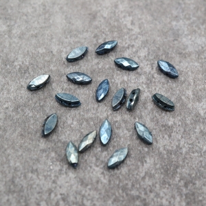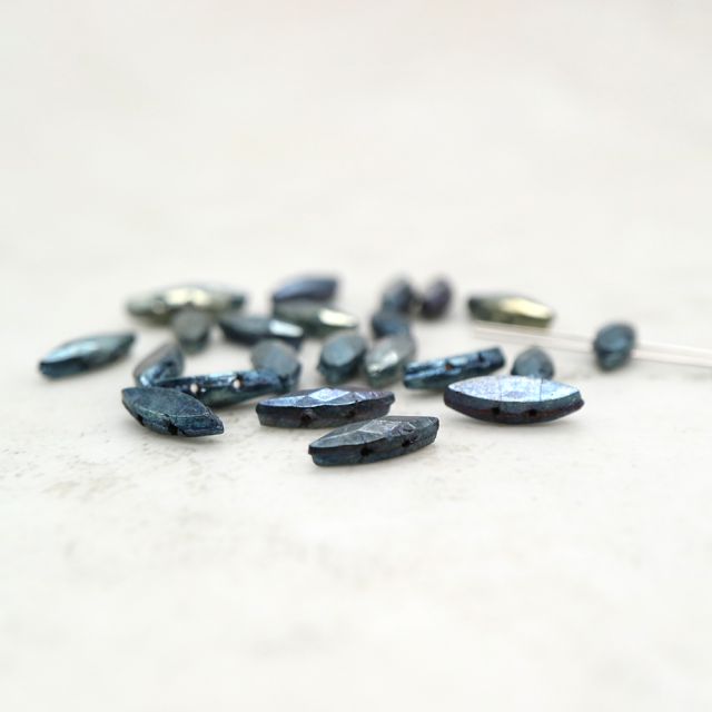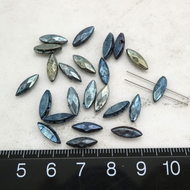フランスヴィンテージビーズ: マーキス メタリックブルーアイリス 約11x4mm【6個】