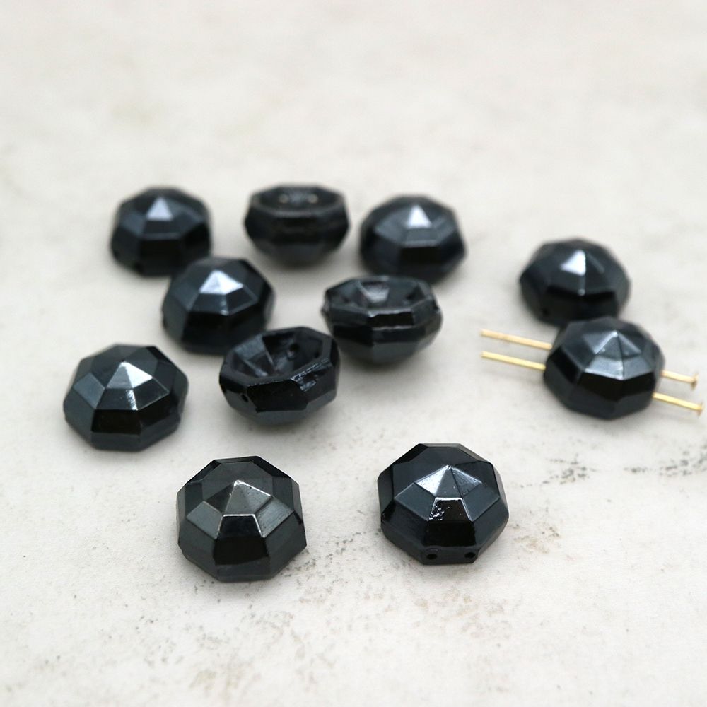 フランスヴィンテージビーズ:ドーム メタリックブラック約13mm【1個】