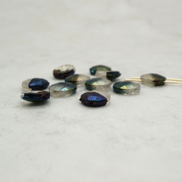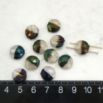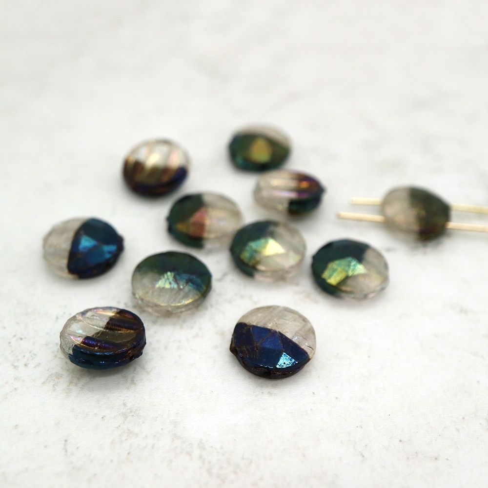 フランスヴィンテージビーズ :フラットラウンド メタリック グリーン/クリスタル 約10mm【2個】