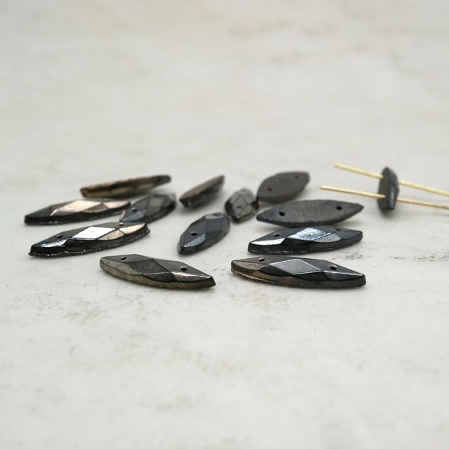 フランスヴィンテージビーズ :マーキス メタリックヘマタイト 約20x6mm【1個】