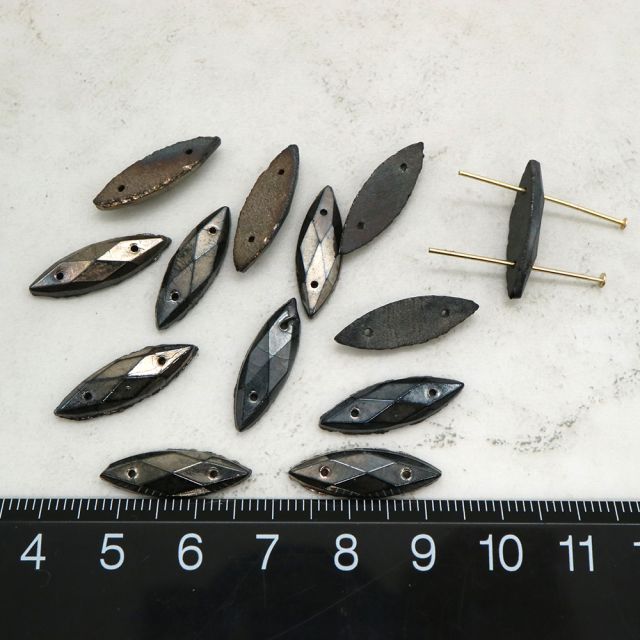 金属的な輝きを持ちながらも、どこか落ち着いた深みのある色合いが特徴で、現代の量産ビーズにはない独特の存在感を放ちます。ファセットカットや立体的なフォルムが光を受けるたびに陰影を生み、作品に奥行きと表情を与えてくれます。長い年月を経たヴィンテージならではの微細なムラや風合い、均一ではないその佇まいこそが魅力です。