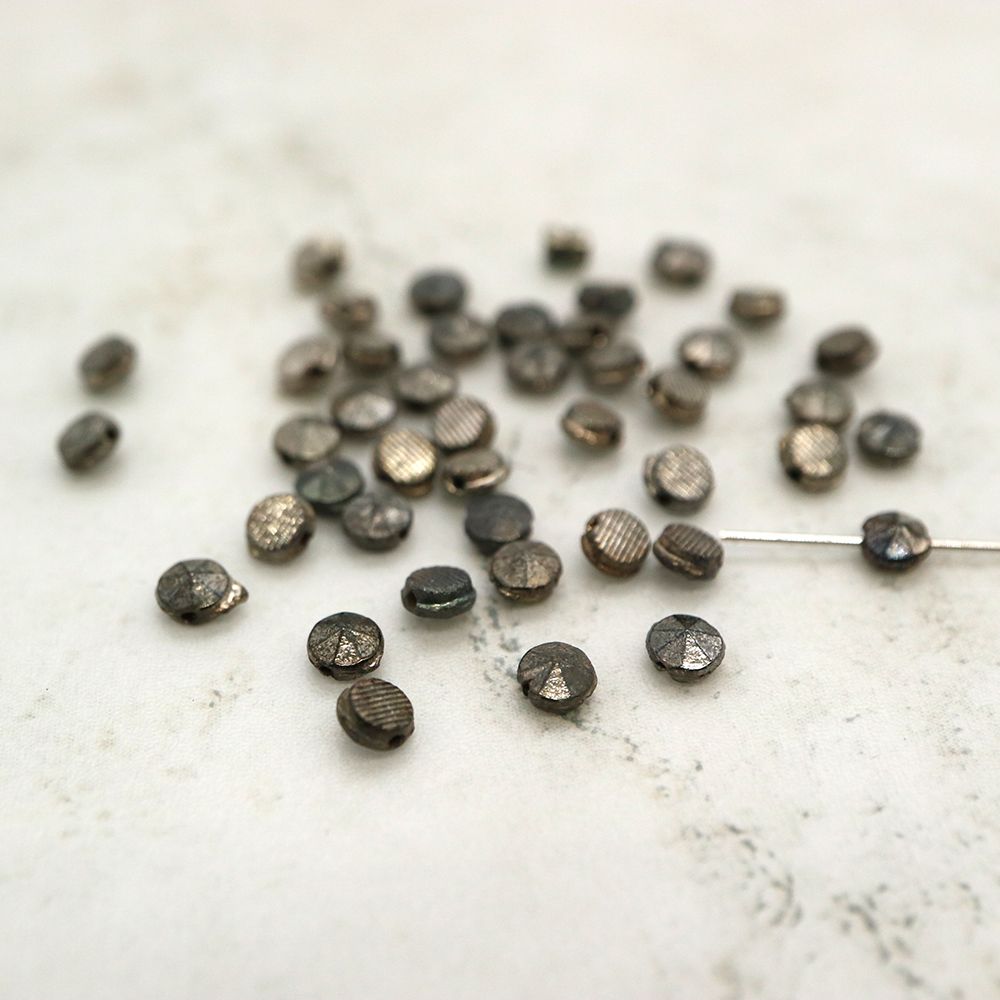フランスヴィンテージビーズ: フラットラウンド メタリックシルバー 約3mm【10個】