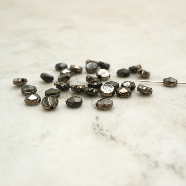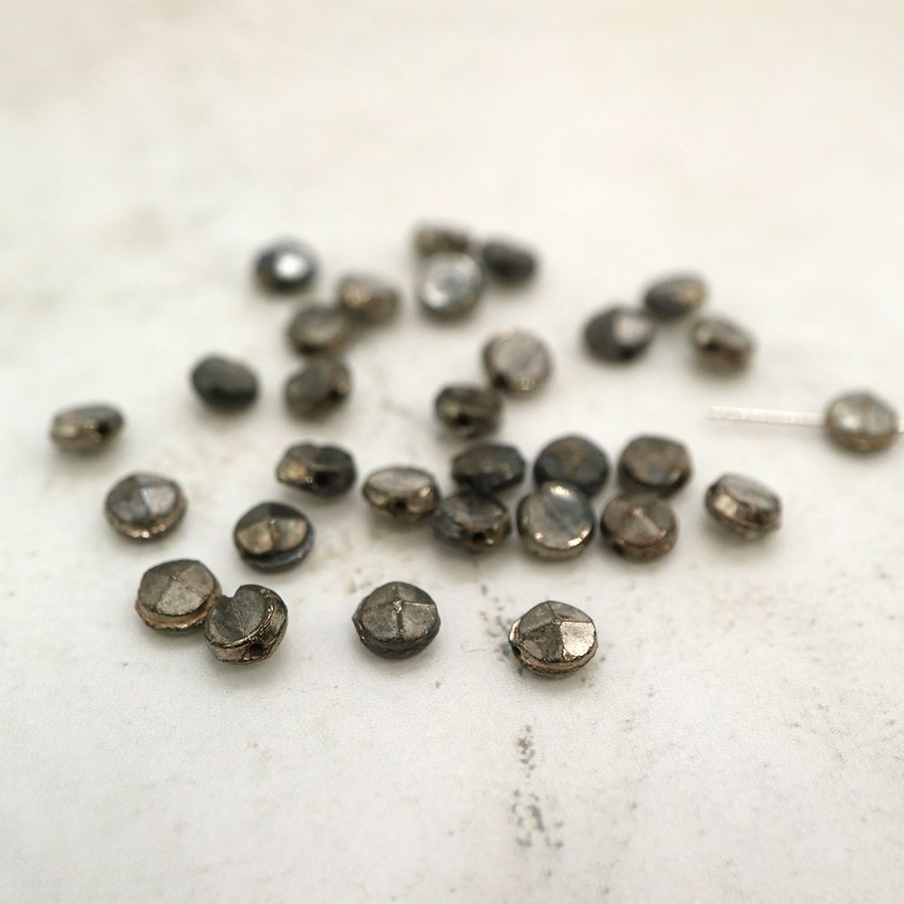 フランスヴィンテージビーズ:フラットラウンド メタリックシルバー 約4x4mm【20個】