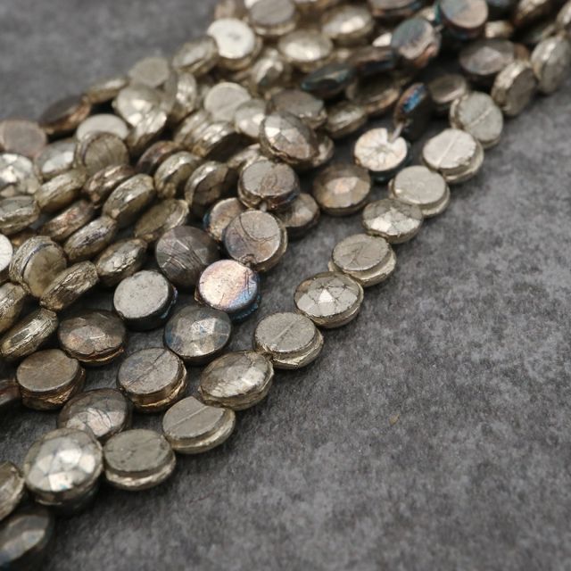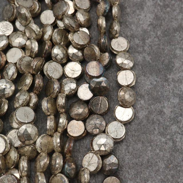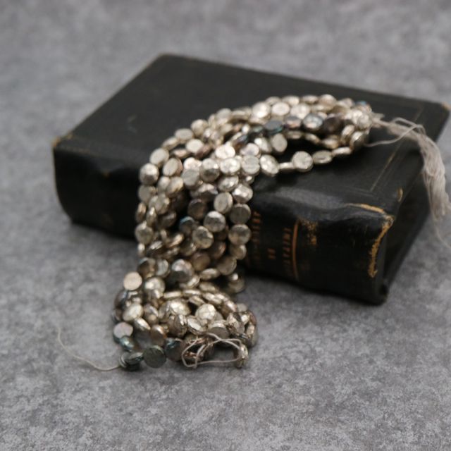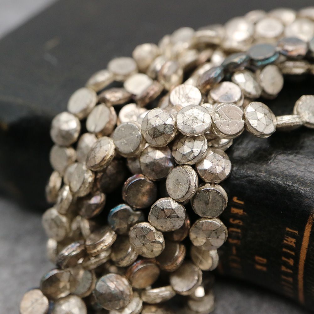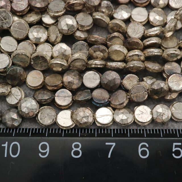 糸通しフランスヴィンテージビーズ: フラットラウンド メタリックシルバー 約7mm【1連約25個】