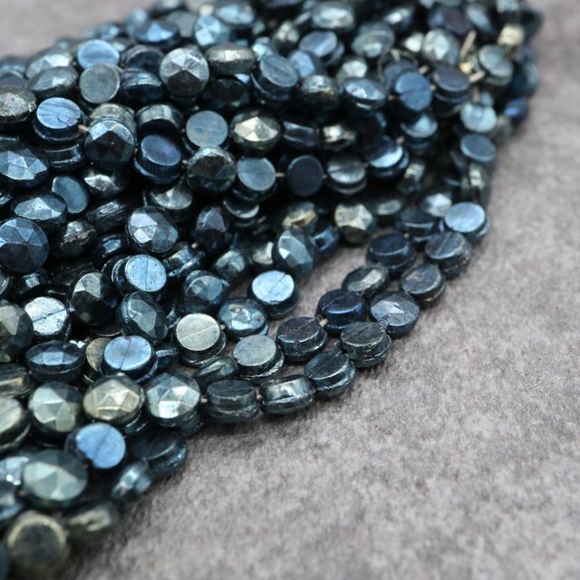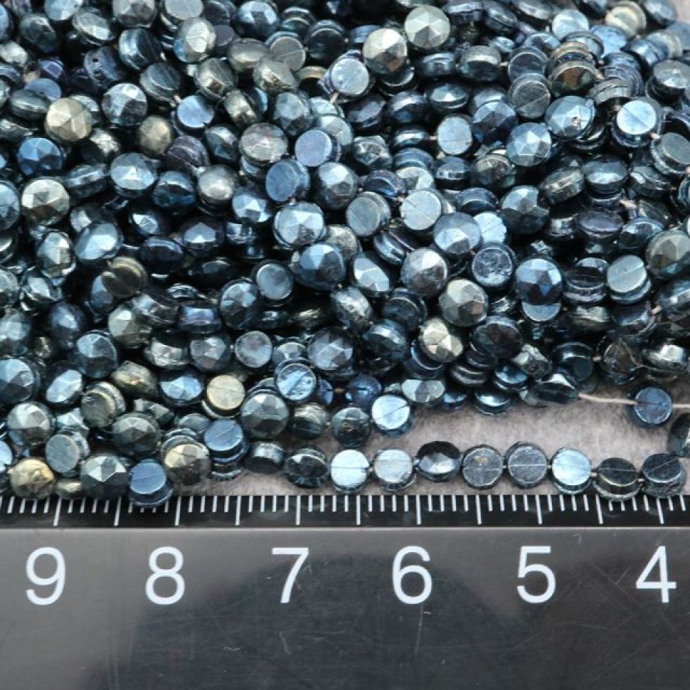 フランスヴィンテージビーズ: フラットラウンド メタリックブルー 約4mm【15個】