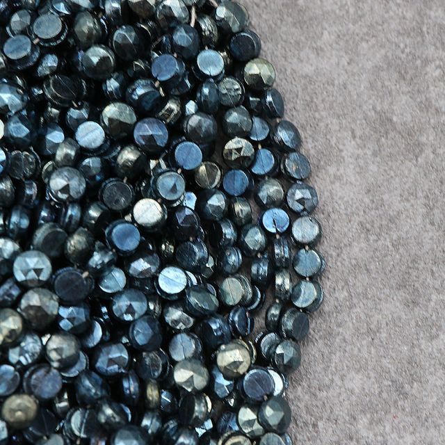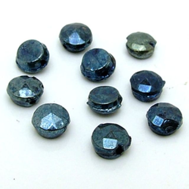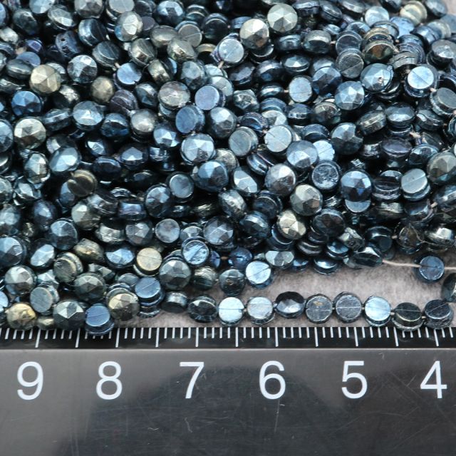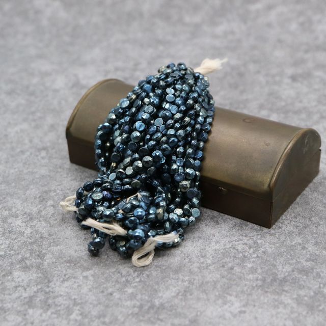 糸通しフランスヴィンテージビーズ :フラットラウンド メタリックブルー 約4mm【1連約24個】