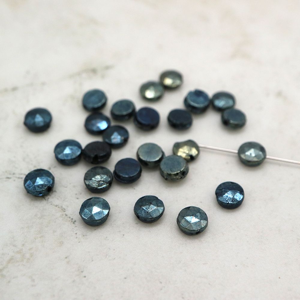 フランスヴィンテージビーズ: フラットラウンド メタリックブルー 約4mm【15個】