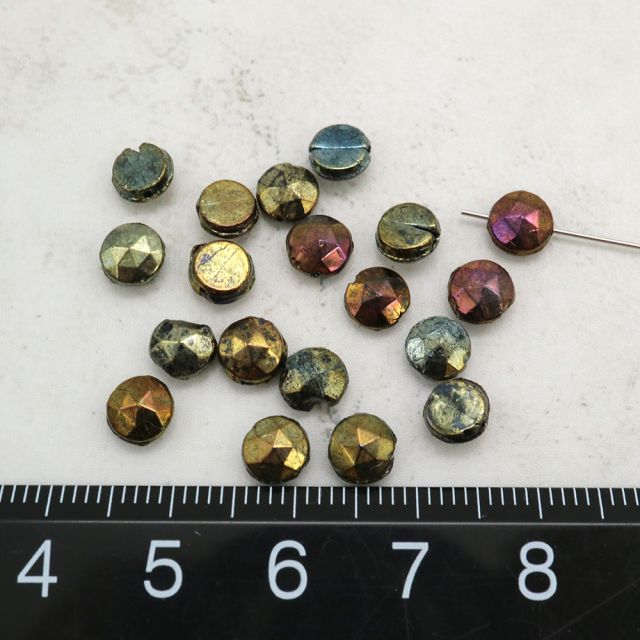 フランスヴィンテージビーズ :フラッドラウンド メタリックグリーンアイリス約5.5mm【10個】