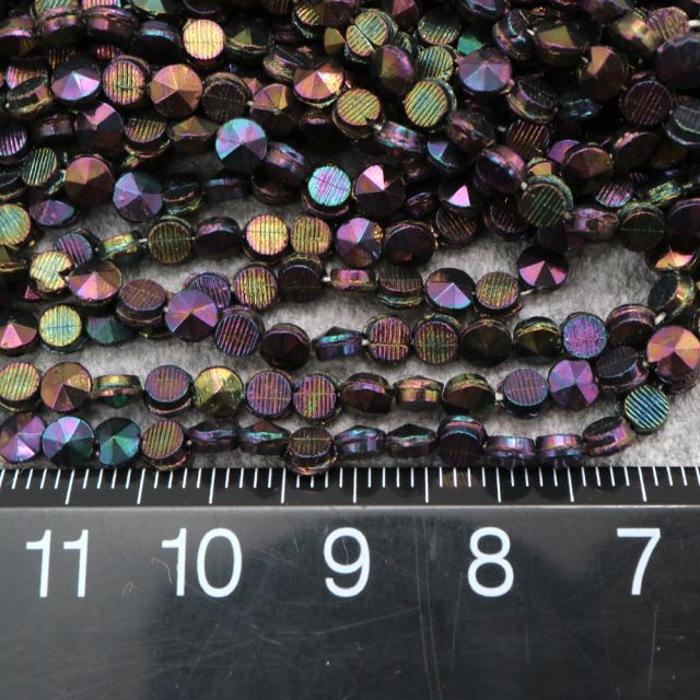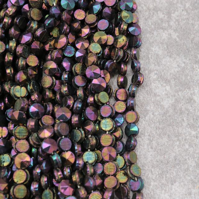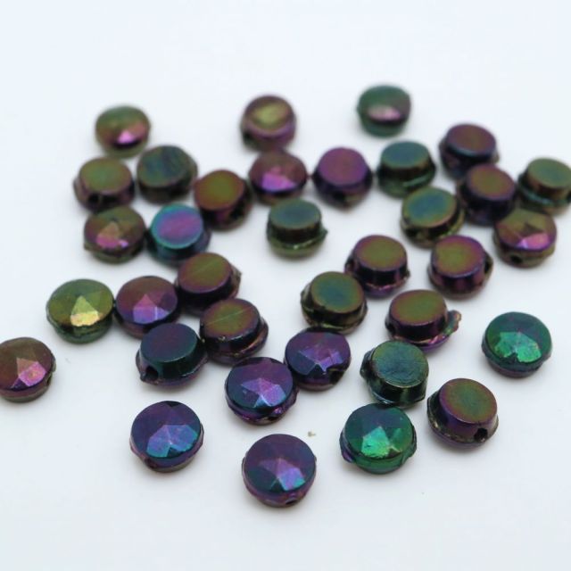 糸通しフランスヴィンテージビーズ: フラットラウンド メタリックパープル 約4x4mm【1連約23個】