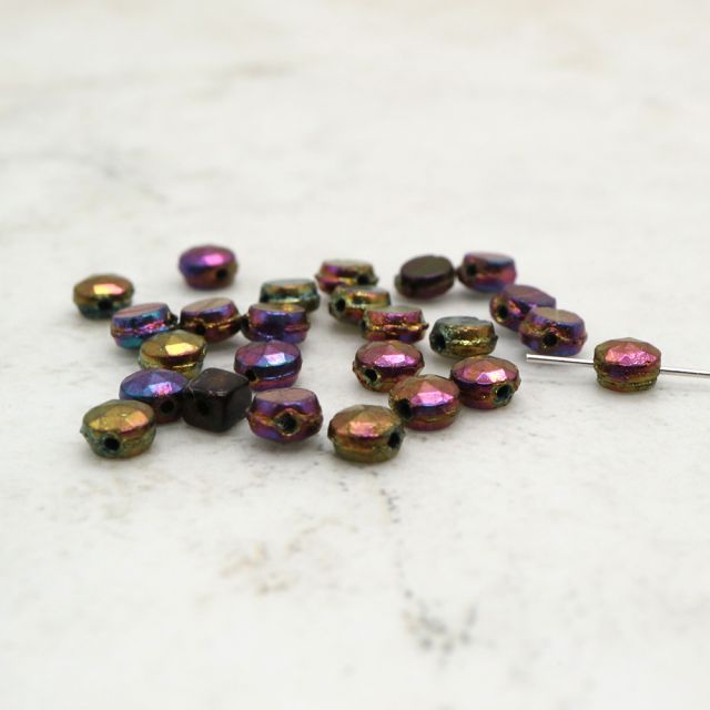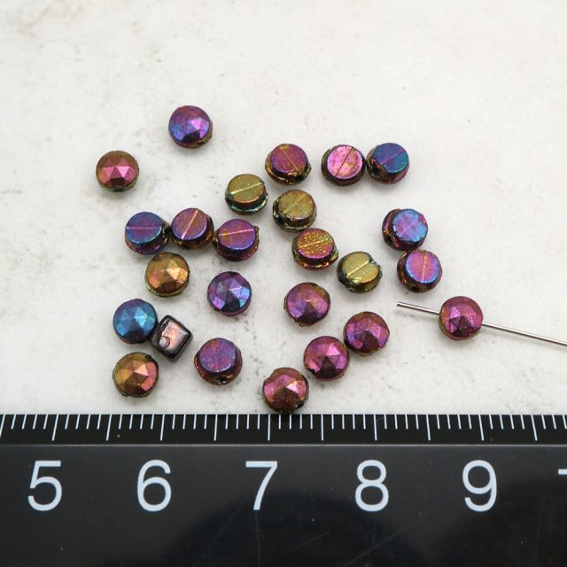 フランスヴィンテージビーズ: フラッドラウンド メタリック パープルアイリス約4.5mm【15個】
