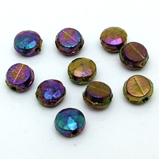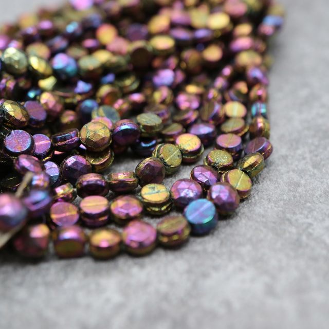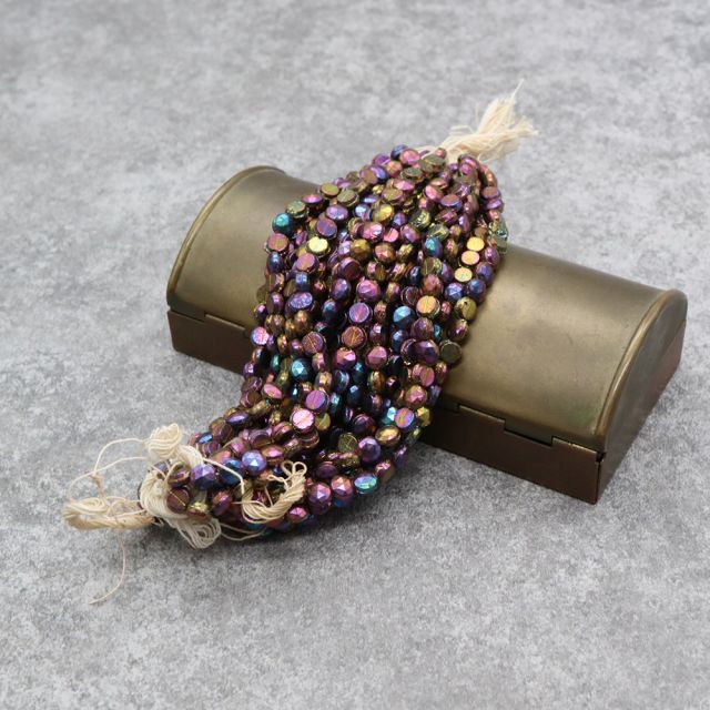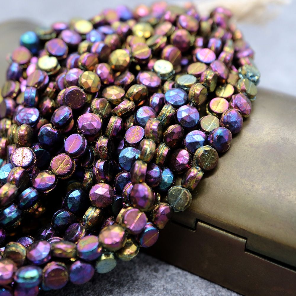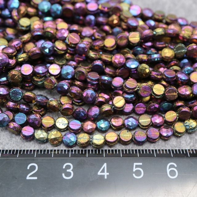 糸通しフランスヴィンテージビーズ: フラッドラウンド メタリックパープルアイリス約4.5mm【1連約23個】