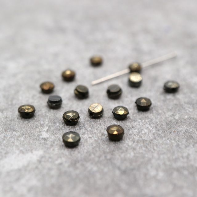 フランスヴィンテージビーズ:フラットラウンド メタリックブラウンアイリス 約3x3mm【20個】
