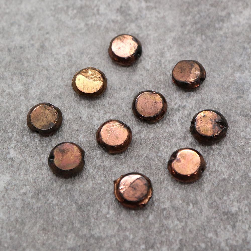 フランスヴィンテージビーズ:フラットラウンド メタリックダークブロンズ 約7x7mm【6個】