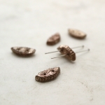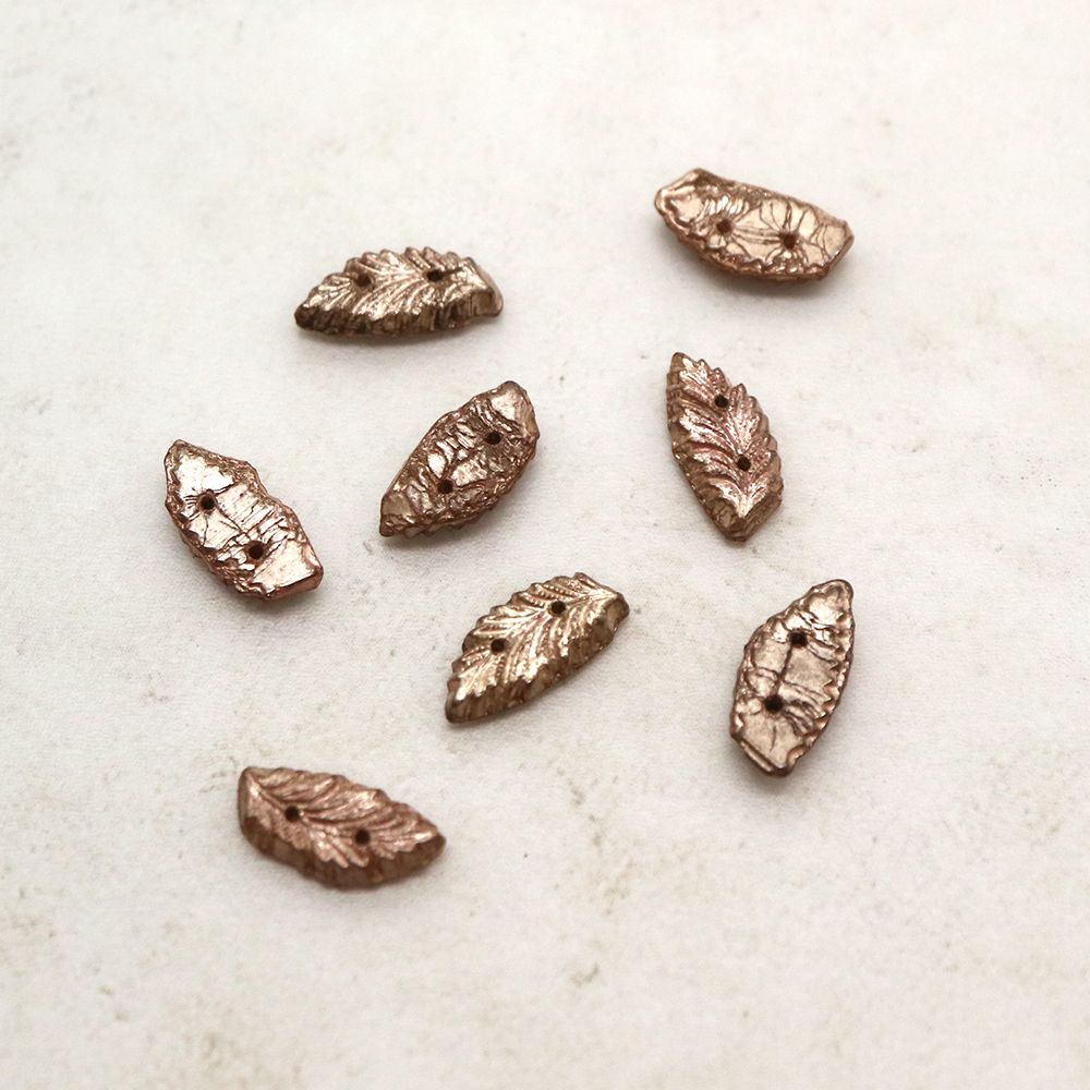 フランスヴィンテージビーズ:リーフ メタリック ピンク 約12x5mm【3個】