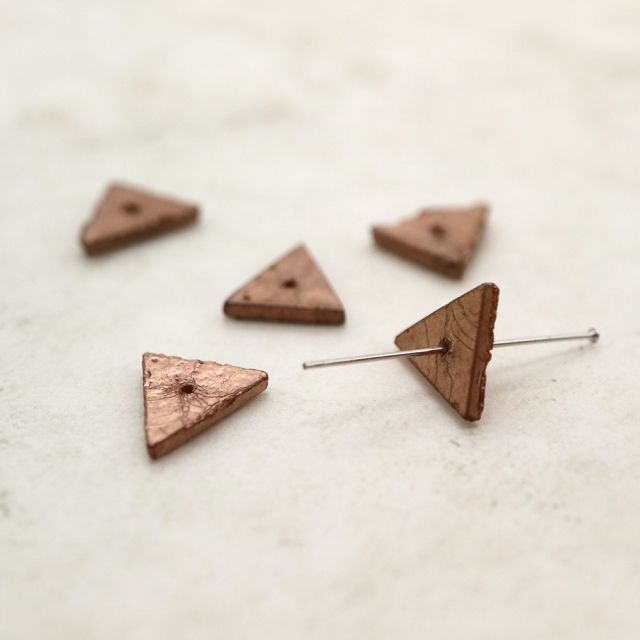 フランスヴィンテージビーズ: 三角形 メタリックピンク 約10x10mm【5個】