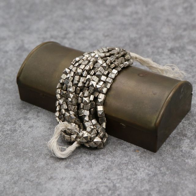 糸通しフランスヴィンテージビーズ : スクエア メタリックシルバー 約3.5x3.5x2mm【1連約26個】