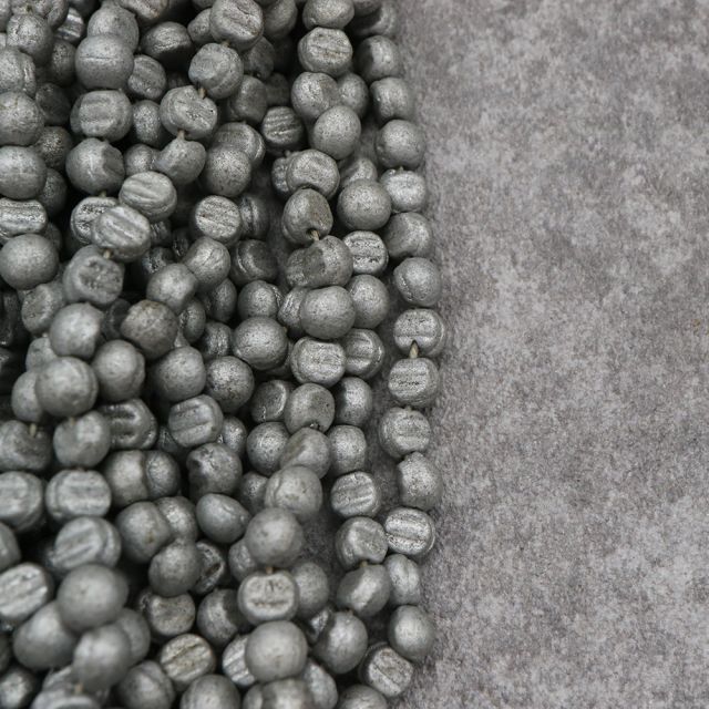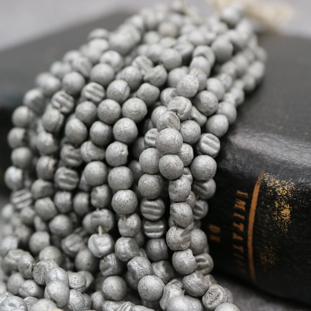 糸通しフランスヴィンテージビーズ: ドーム メタリックマットシルバー 約4x4mm【1連約24個】