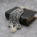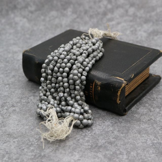 マットなシルバー調のビーズは、モードの変化や喪の装飾、あるいは日常的なコスチュームジュエリーに用いられ、現代とは異なる美意識を映し出しています。