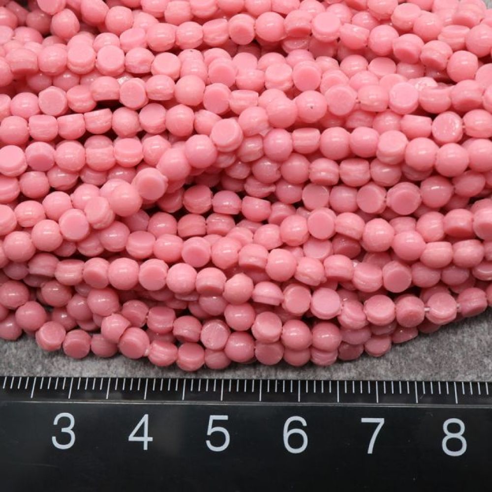 フランスヴィンテージビーズ フラットラウンド ピンク 4x4mm【15個】