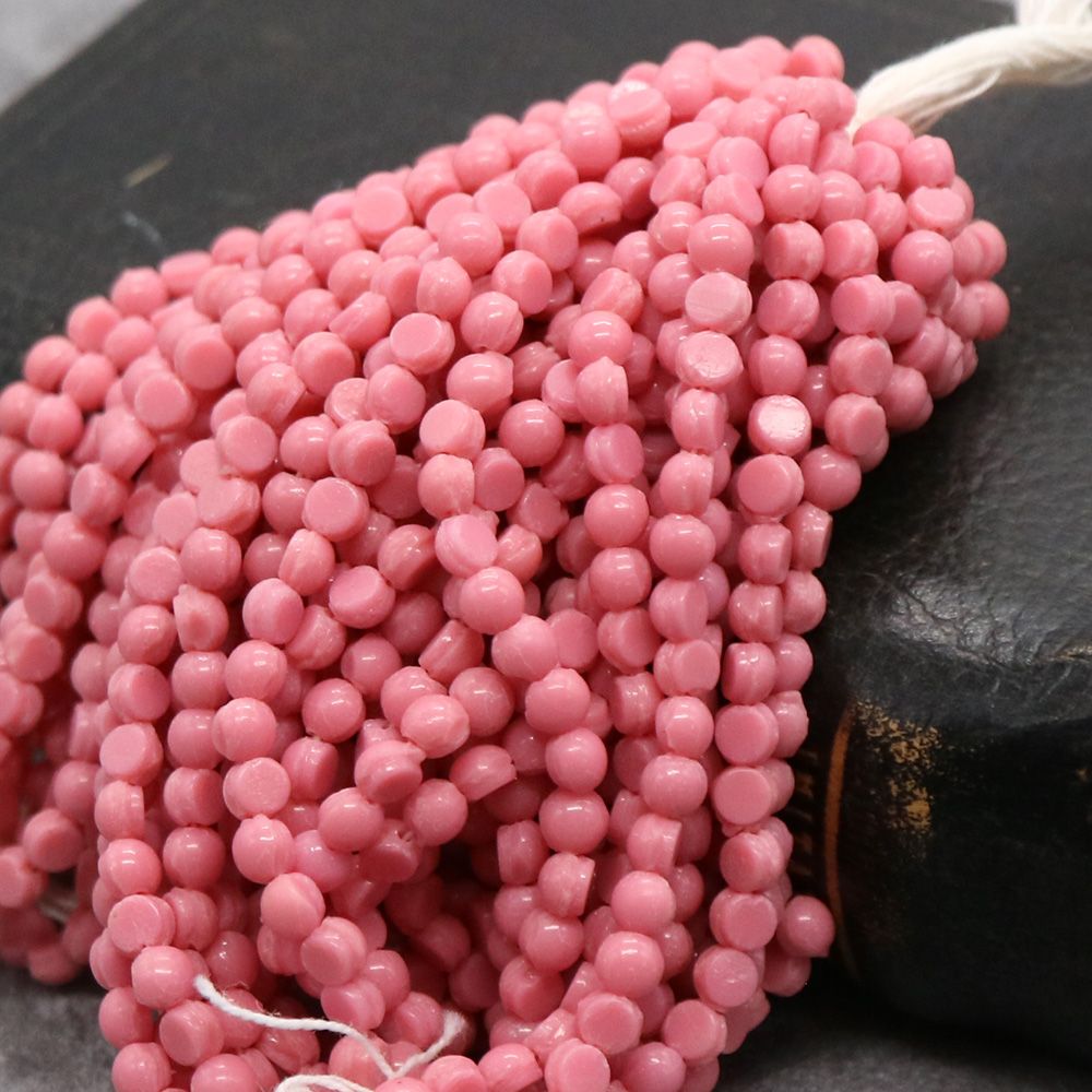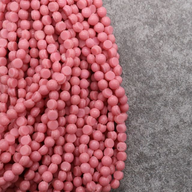 糸通しフランスヴィンテージビーズ フラットラウンド ピンク 4x4mm【1本約24個】