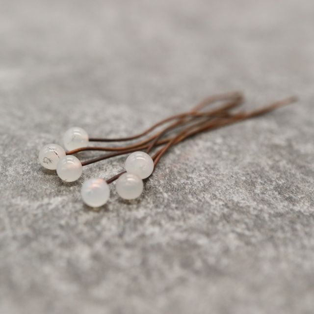 フランスヴィンテージビーズ ピン付きラウンド ホワイトオパール 約3-5mm【2個】