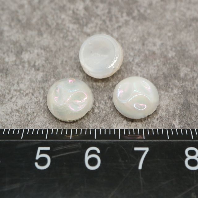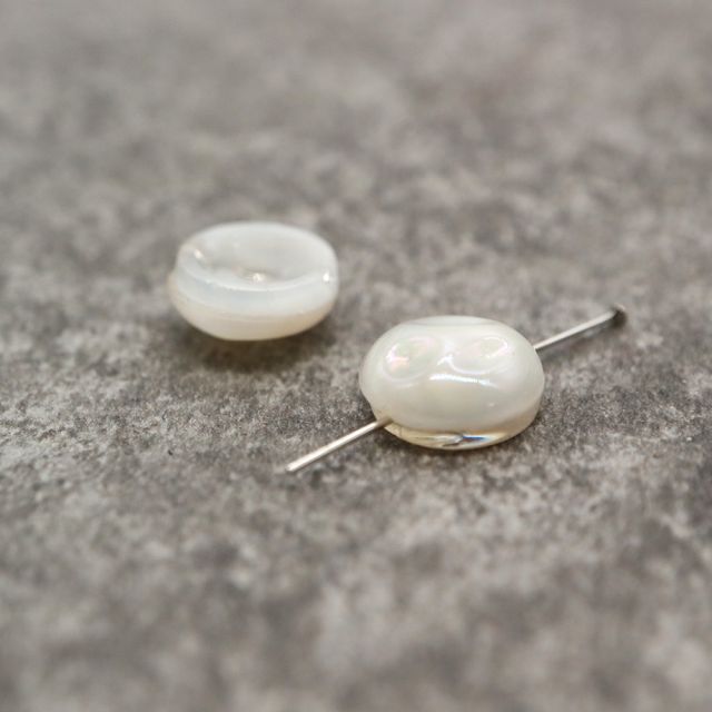 • フランスヴィンテージビーズ 変形フラットラウンド ホワイト 10×10mm