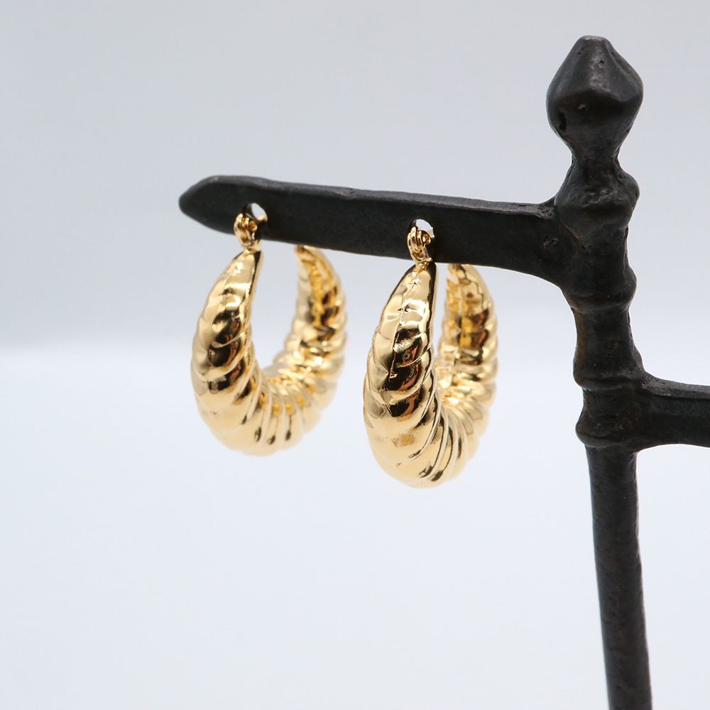 【決算SALE】ツイストフープピアス完成品 25x28mm(薄金メッキ・ニッケルフリー)【1ペア】