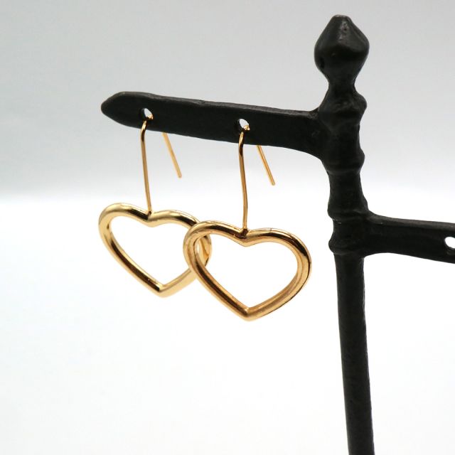 オープンハートフックピアス完成品 24x37mm(薄金メッキ・ニッケルフリー)【1ペア】