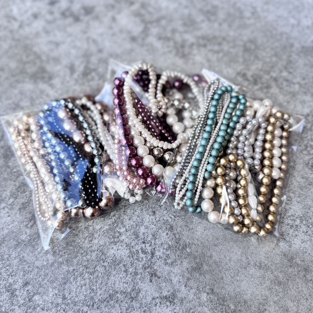 ヴィンテージならではのニュアンスカラーはプラでも安っぽくならず、軽さも兼ね備えた万能ビーズ。