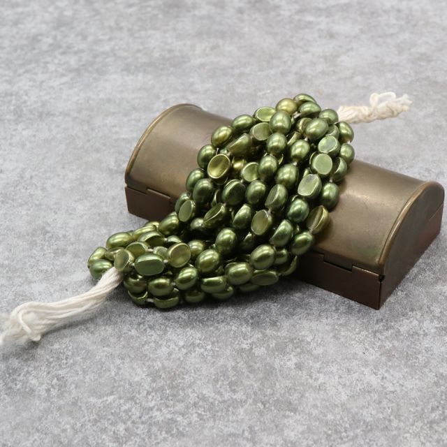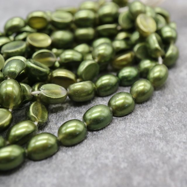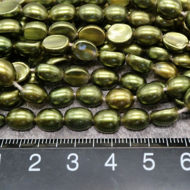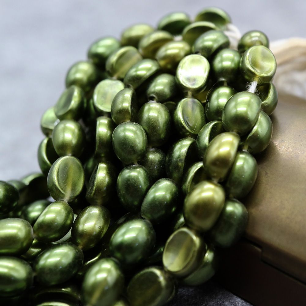 糸通しフランスヴィンテージ スフレビーズ オーバルドーム グリーン 約8x6mm 【1本約12個】