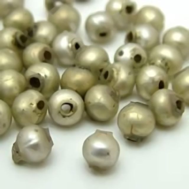 1930〜1950年代のフランスまたはチェコスロバキアのボヘミア地区で製造されたと推定される、中空ガラスのスフレビーズ。